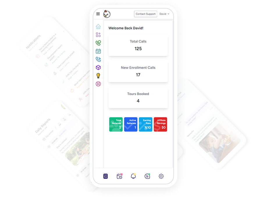 - Receive Daily Reports: Get instant updates on calls, enrollments, and scheduled tours directly from your childcare enter dashboard on JOOJOO AI.