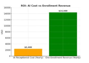 - Cost Savings – Even one new enrollment ($1,200/month average tuition) covers the cost of AI for the year.