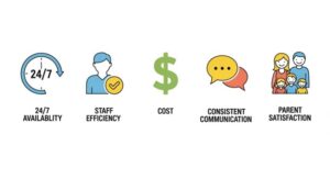 • Answer Parent Calls 24/7: Instantly handle inquiries about your programs, tuition rates, and availability—even when you’re closed.